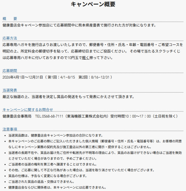 ※当キャンペーンは「健康畳店会」加盟店限定となります。