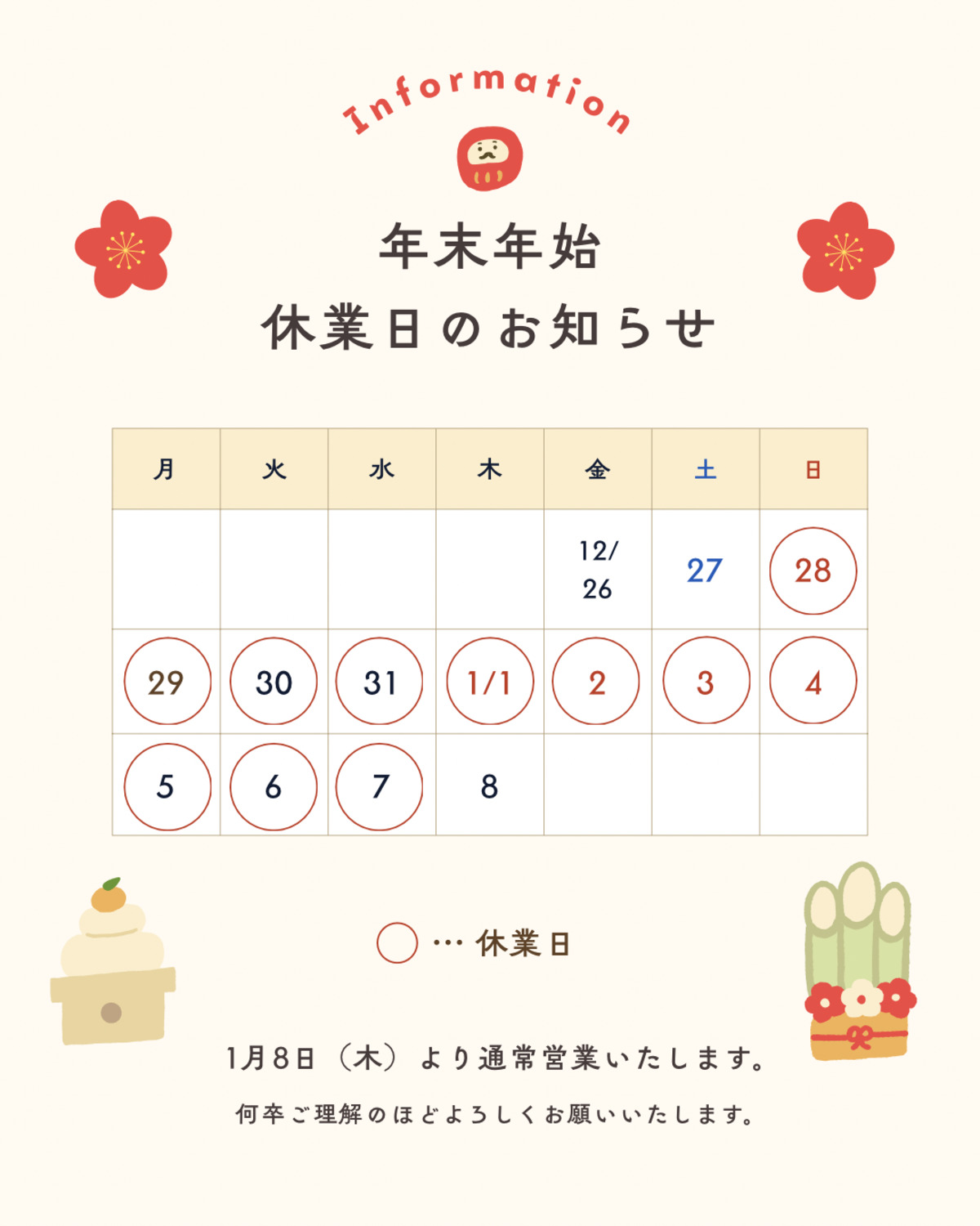 年末年始の休業日について